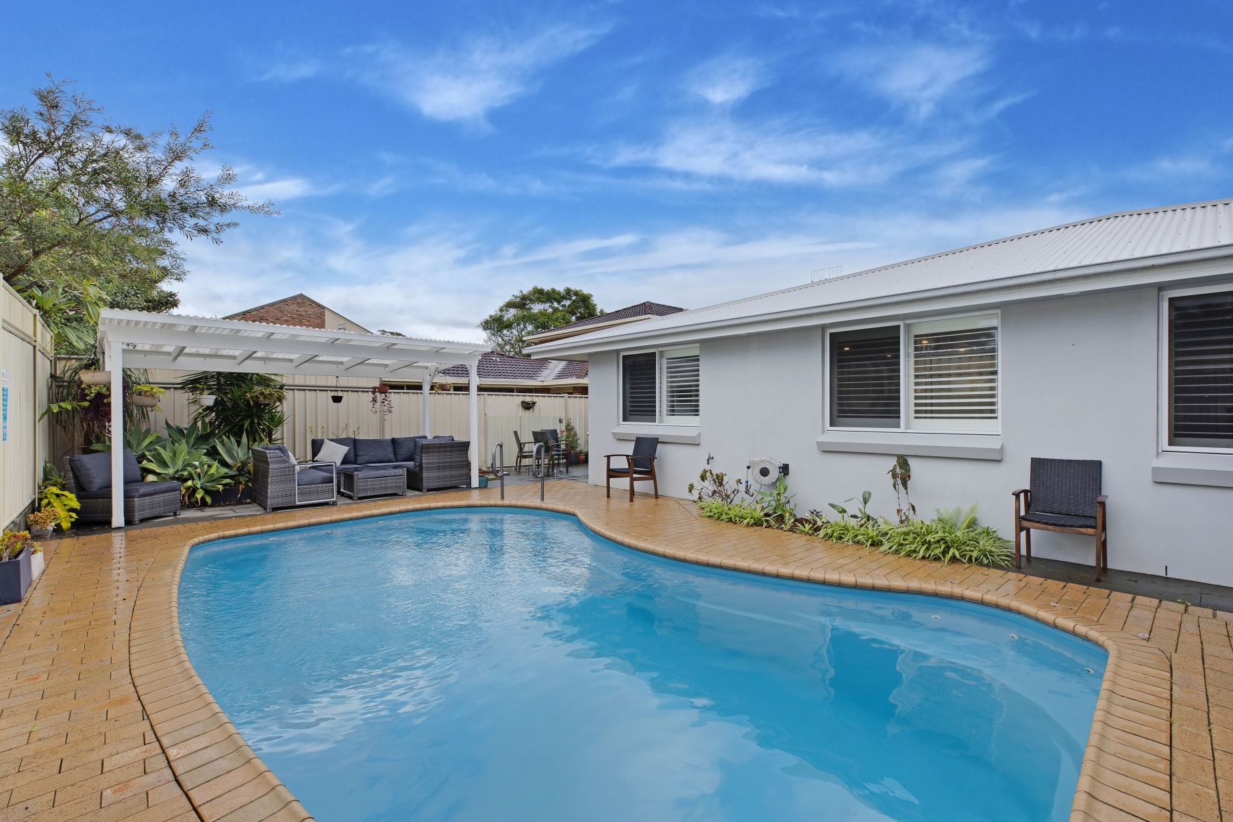 Boasting three bedrooms, two bathrooms, two indoor living areas, two outdoor entertaining areas, an inground pool and pool house, there are plenty of versatile spaces for relaxing and entertaining with family and friends.