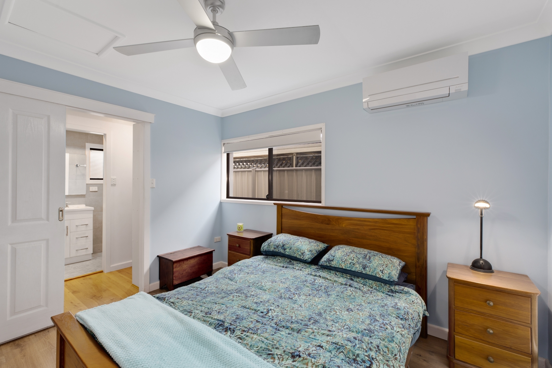 - Floorboards, LED lighting, plantation shutters, split system air conditioning and ceiling fans throughout - Front garden with patio / BBQ area