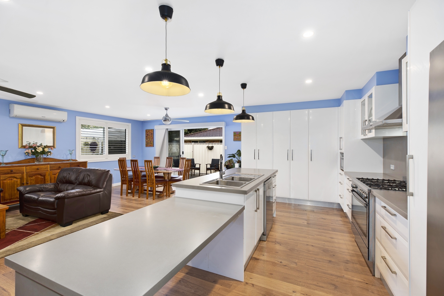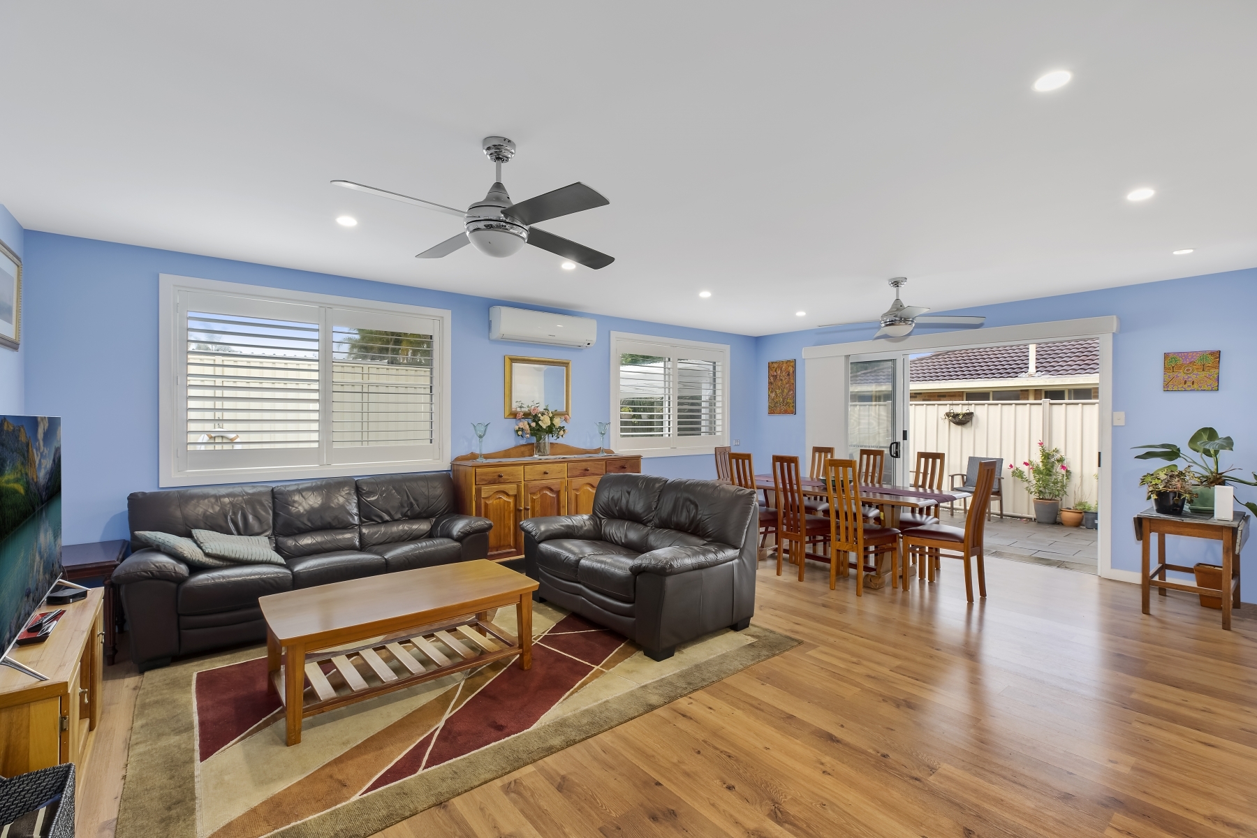 - Open plan living and dining spilling out to a covered entertaining patio